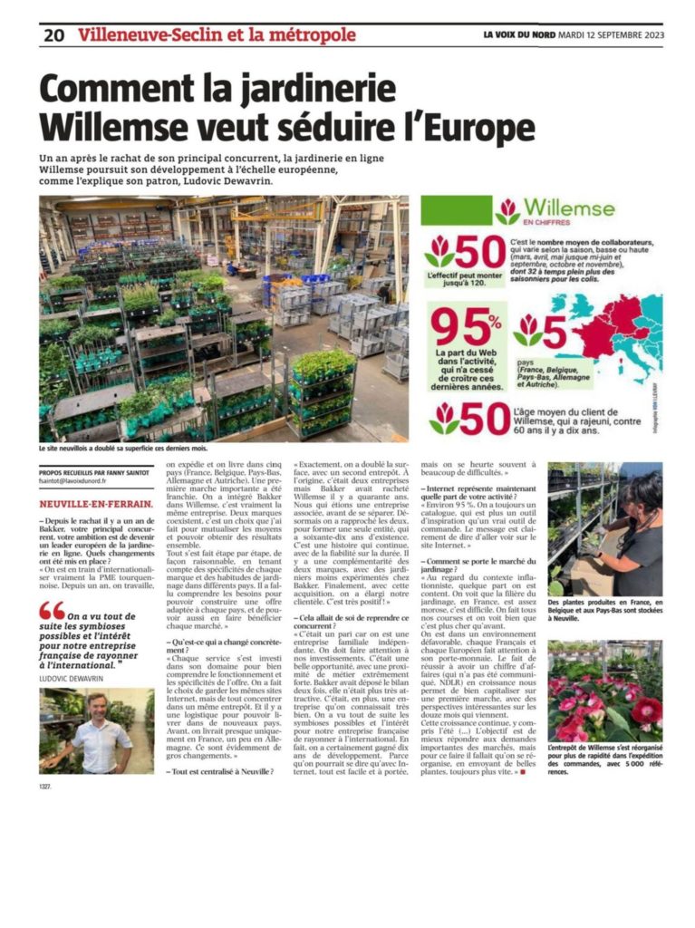 Un an après le rachat de son principal concurrent, la jardinerie en ligne Willemse poursuit son développement à l’échelle européenne, comme l’explique son patron, Ludovic DEWAVRIN.