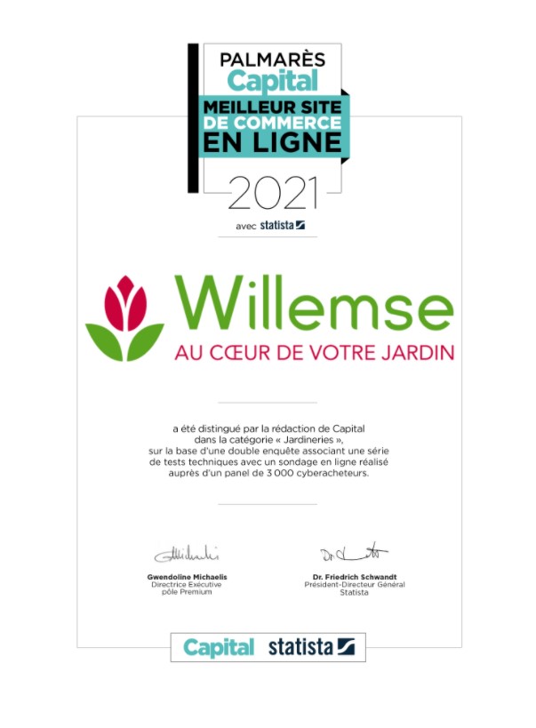 C’est avec joie que toute l’équipe vous annonce que Willemse a été élu meilleur site e-commerce dans la catégorie « Jardinerie », pour la troisème année ! « Willemse propose près de 6000 références sur son site, avec beaucoup de conseils aux débutants » – Capital